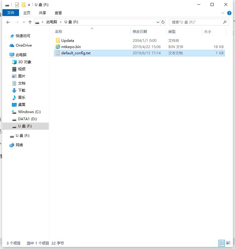 2. 配置文件的格式需要txt格式,文件名称固定为 “default_config”。如下图: