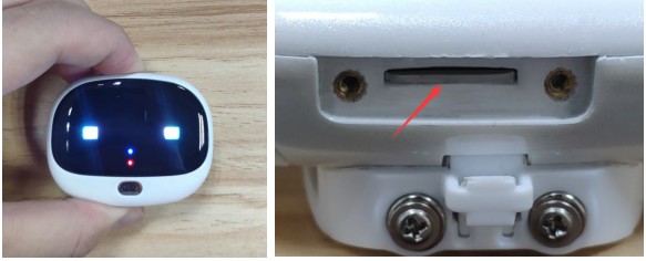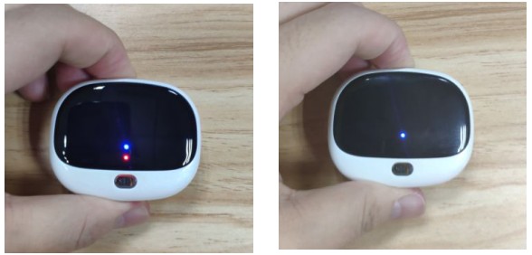 设备开机状态(上面左图 ):短按开机键一下,红/蓝指示灯亮,表示设备开机状态