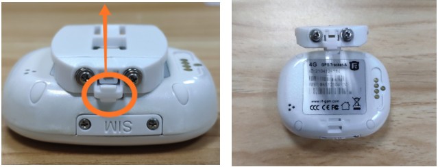 按图中箭头所示方向向外拉卡扣,并同时向上提背夹,打开后可看见宠物定位器标签,标签上有ID号。