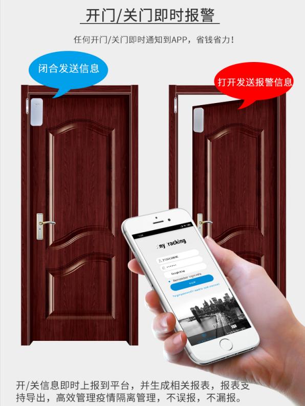 门磁系统是免费安装在集中隔离后居家健康检测居民门上的一款“智能设备”,居家隔离人员异常开门、关门,将通过短信等方式推送报警信息至社区和街道的指定人员。