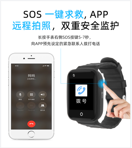 高清拍照:可以随时远程发送拍照指令,以便更好了解手表配戴者的安全情况。