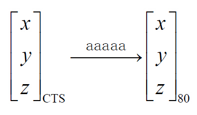 目前,中国的生产建设多采用1980 年国家大地坐标系,所以在GPS 定位时,有必要将 地面点的WGS-84 坐标转换成80 坐标系下的坐标。假设(x, y, z)80 和(x, y, z)CTS 分别是P 点的参心坐标和协议地球坐标,那么它们的转化可以简单表示如下: