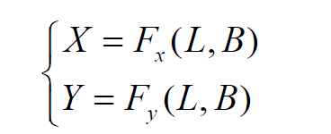 日常生产生活中使用的地图,都是平面地图。地球表面是一个曲面,如果要把曲面地表 上的点表达在一个平面上,同时还要在某种程度上保持点与点之间的相互关系,就需要投影。 所谓投影(Projection),简单地说就是两个面之间,点与点的对应。将椭球面上的点的大地 坐标,按照一定的数学法则,变换为平面上相应点的平面坐标,称为地图投影(Map Projection)。用两个方程式表示就是: