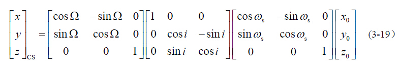 结合(3-18)式,可以确定卫星在任意观测历元下,在天球坐标系中的坐标。