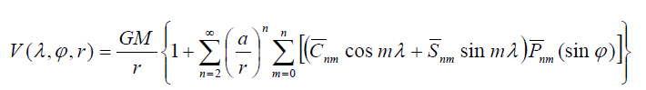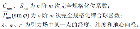 实际上,由于地球真实引力分布的复杂性,该积分式很难用一个简单函数表达。根据球 函数的知识,地球引力位函数可以用球谐函数的级数展开式来表达。即: