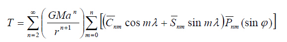 地球引力场可以用引力位函数描述,(3-22)式描述的就是理想的匀质球体形成的引力场, 即中心引力场。而对于真实的地球引力场,其位函数可以表示为: