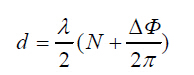 从(4-5)式可以看出,如果调制信号的波长的1/2(也称测尺长度),超过待定距离d,即λ/2>d,则有整周波数N=0。于是,被测距离为: