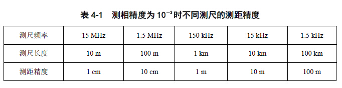 如表4-1 所示,测距误差随着测尺长度的增加而扩大,测程越长测距精度越低。