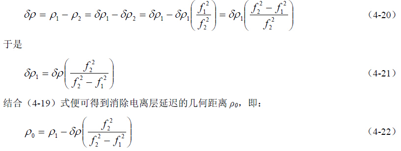 如果分别采用频率为f1、f2 的载波L1 和L2 进行观测,按照公式(4-16)和(4-17)就可以得到: