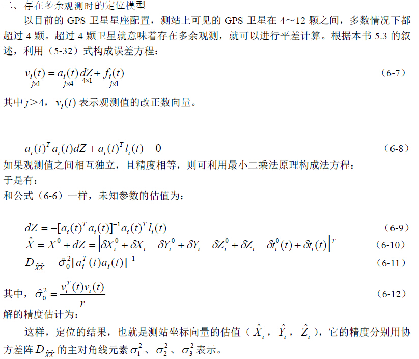 顺便指出,没有多余观测时所获得的定位结果,不论在精度还是可靠性方面都不及有多 余观测的情况,在实际观测过程中应尽量设法避免。