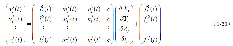 在只有一个观测历元时,由(6-7)式可得误差方程式: