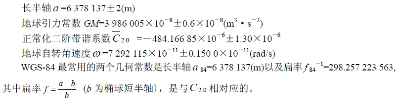 对应于WGS-84 大地坐标系的椭球常数,采用IUGG 第17 届大会的大地测量常数推荐值,即: