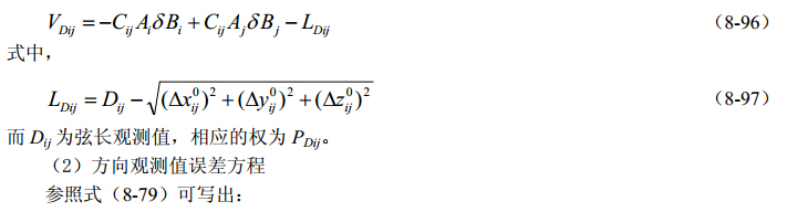 采用这种平差时,GPS 基线向量观测值的误差方程及条件方程与三维约束平差相同。这 里仅写出地面网观测值的误差方程。