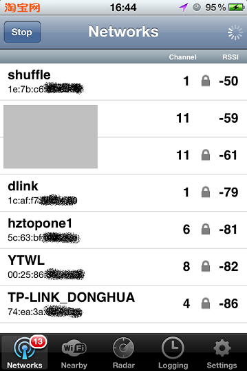 2.设备在开启Wi-Fi的情况下,即可扫描并收集周围的AP信号,无论是否加密,是否已连接,甚至信号强度不足以显示在无线信号列表中,都可以获取到AP广播出来的MAC地址
