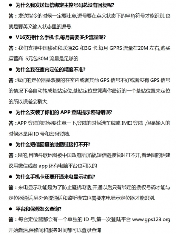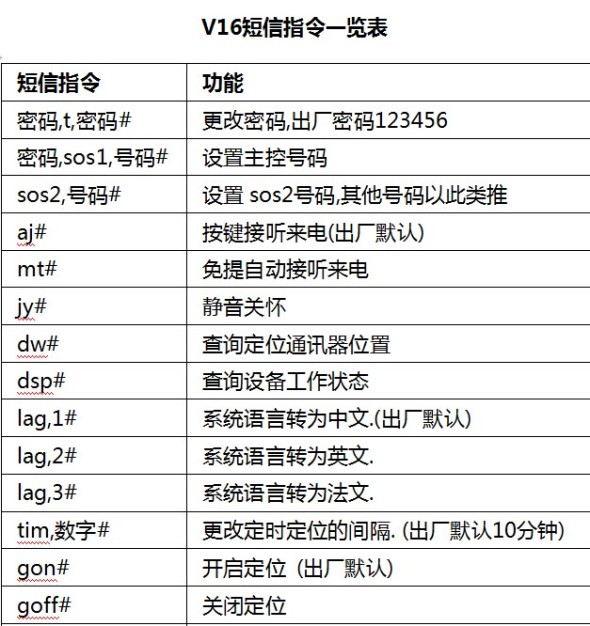 附上V16指令表发送指令都是通过主控号码 发送短信到装在定位器里面的号码