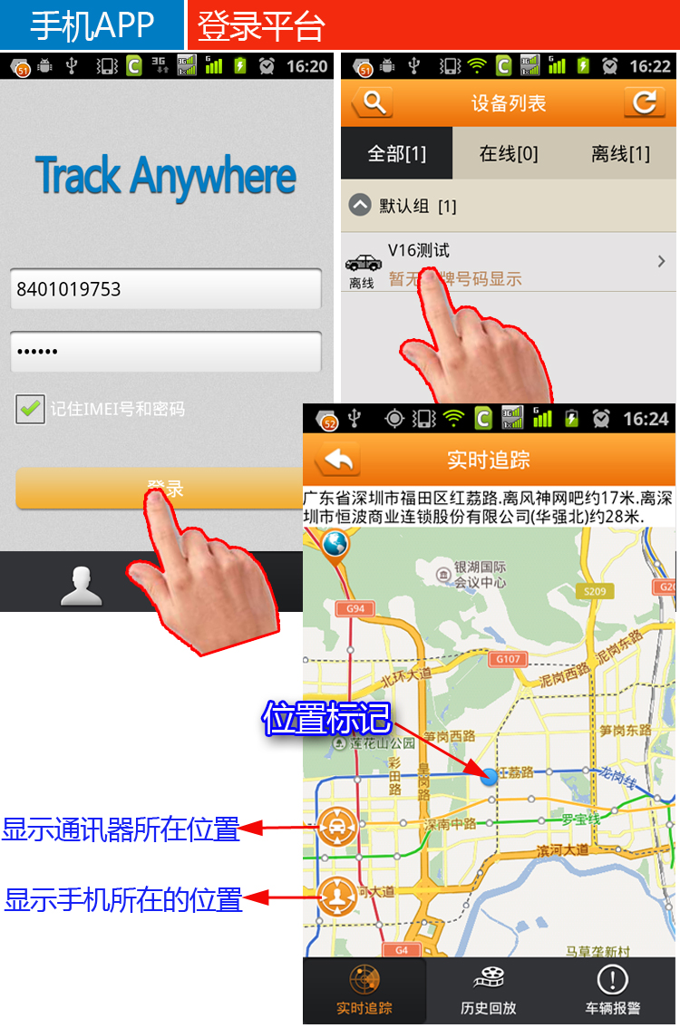 - 我们的定位器支持移动和联通的2G /3G和部分4G卡