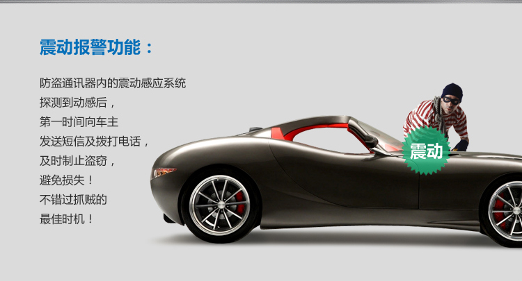 断电报警:当小偷非法拆下您原车电瓶或设备后,设备具有内置电池,马上给您的手机发送断电报警短信,提示外接电源被被断开,让小偷无处可逃。(非法断电,一触即发,小偷难逃)